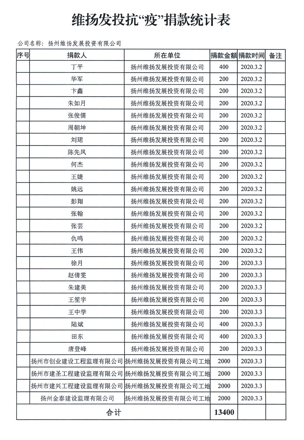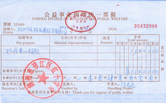 涓流不吝,以成江河。截止目前,公司黨支部一共向邗江區(qū)委組織部賬戶匯入黨員抗疫特殊黨費(fèi)6700元。公司員工及合作單位也籌集了13400元的抗疫愛(ài)心捐款,匯款至邗江區(qū)紅十字會(huì)。